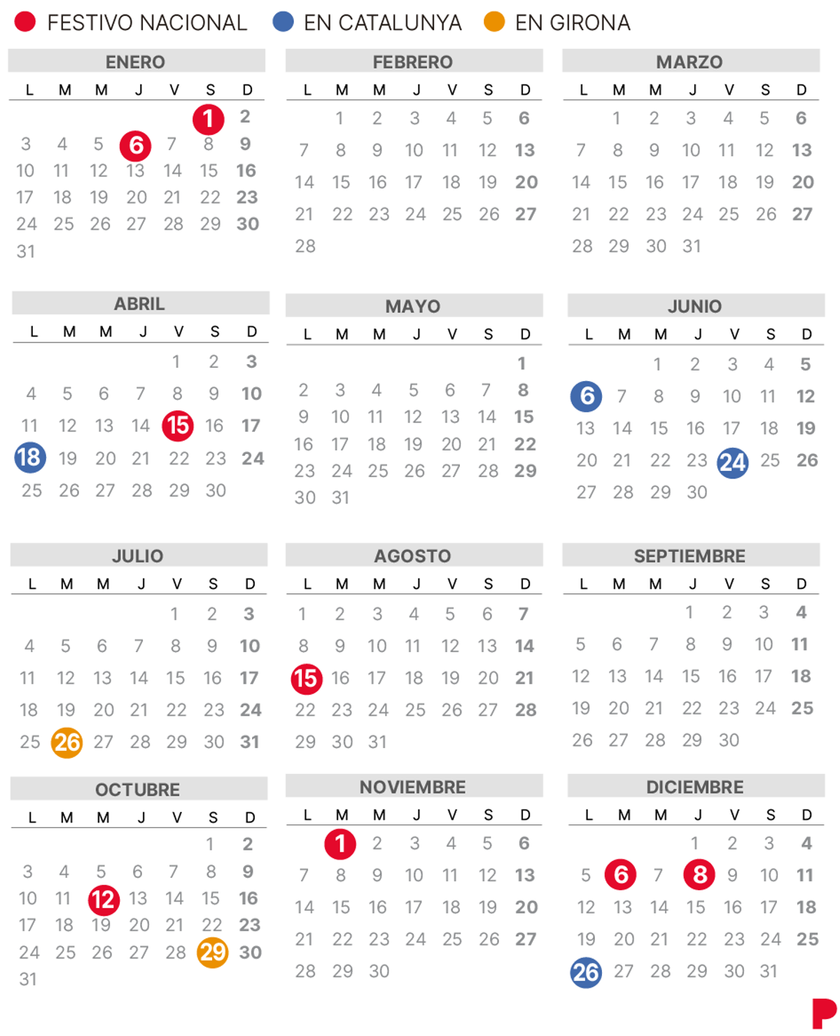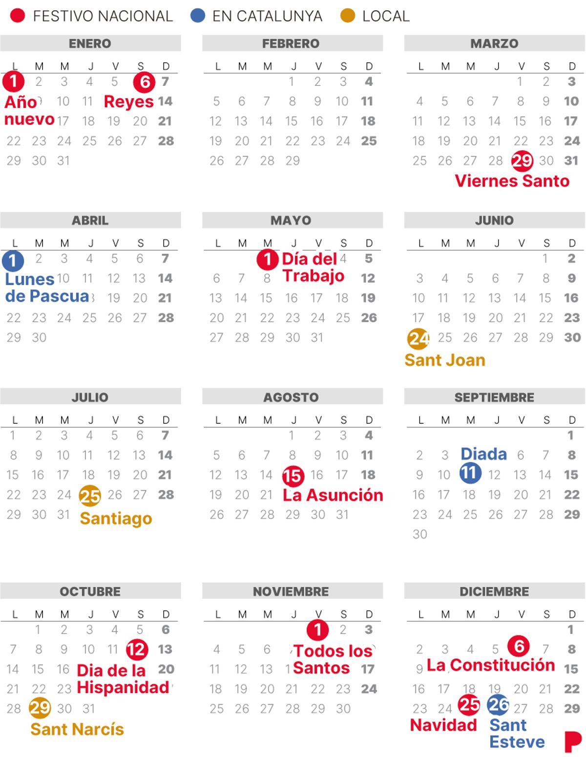 calendario laboral girona 2024 – Para el año que viene, Girona contará con tres días festivos que caerán en lunes (el 1 de enero, el 1 de abril y el 24 de junio), un festivo que caerá en martes (el 29 de octubre), tres festivos que . Son muchos los trabajadores que buscan el calendario laboral de 2024 para conocer cuántos días quedan para un puente o para un festivo que permita descansar de la jornada laboral. El calendario .