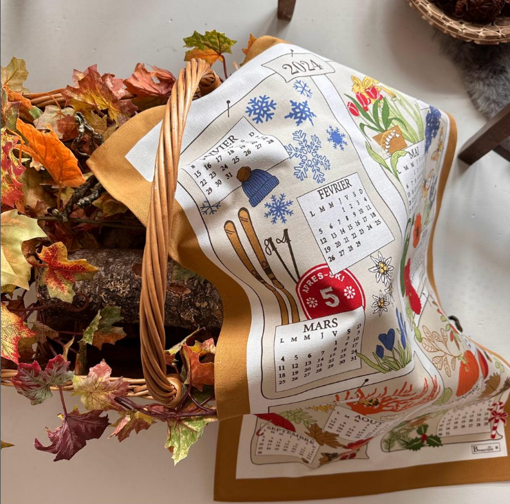 Les Saisons 2024 calendar tea towel high quality cotton and linen