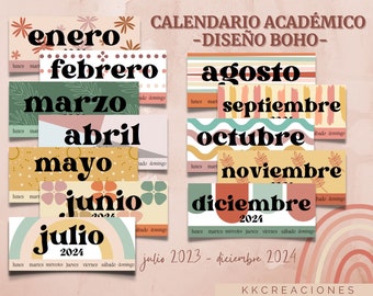 2023 2024 Spanish Academic Printable Calendar With Boho Design Etsy